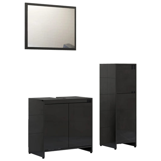 Berkfield 3 Piece Bathroom Furniture Set High Gloss Black Engineered Wood