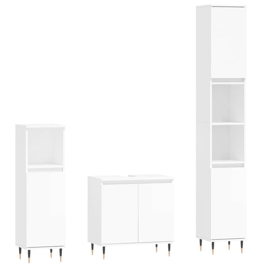 Berkfield 3 Piece Bathroom Furniture Set High Gloss White Engineered Wood