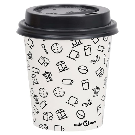 Berkfield Coffee Paper Cups with Lids 200 ml 100 pcs White and Black