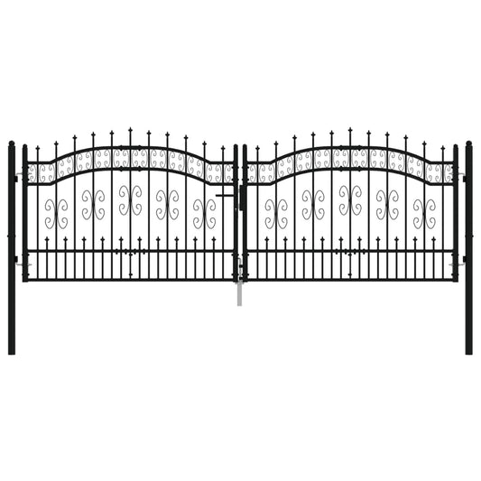 Berkfield Fence Gate with Spear Top Black 305x151 cm Powder-coated Steel