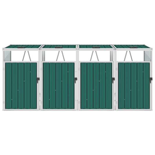 Berkfield Quadruple Garbage Bin Shed Green 286x81x121 cm Steel