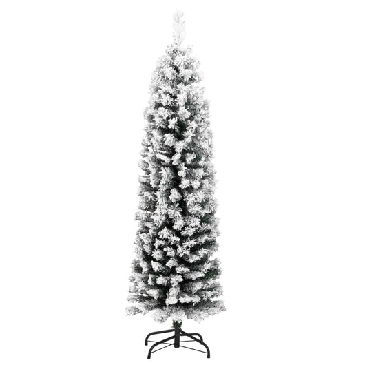 Berkfield Slim Artificial Christmas Tree with Flocked Snow Green 150 cm PVC