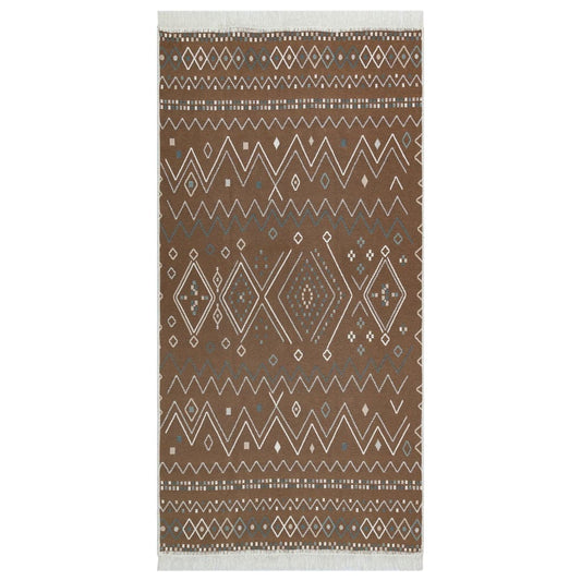 Berkfield Rug Beige and Blue 100x300 cm Cotton
