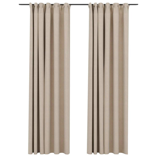 Berkfield Linen-Look Blackout Curtains with Hooks 2 pcs Beige 140x225 cm