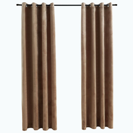 Berkfield Blackout Curtains with Rings 2 pcs Velvet Beige 140x225 cm