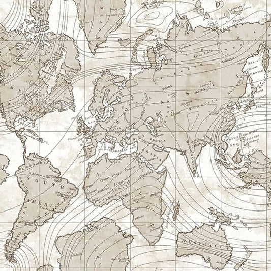 Noordwand Wallpaper Friends & Coffee The World Map Metallic and Beige