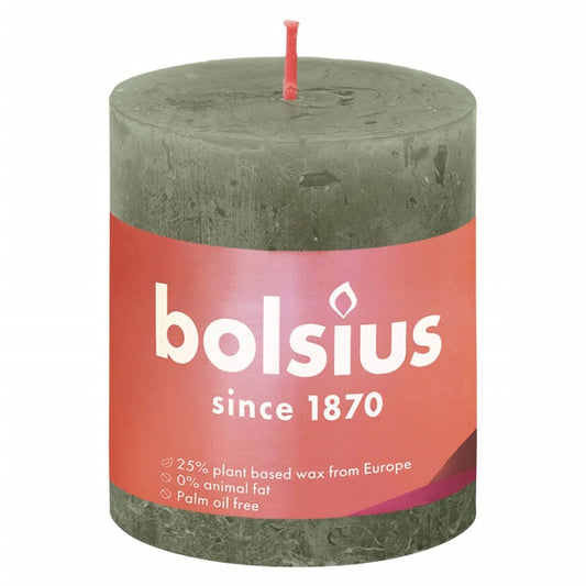 Bolsius Rustic Pillar Candles Shine 4 pcs 80x68 mm Fresh Olive