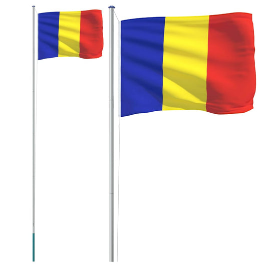 Berkfield Romania Flag and Pole 6.23 m Aluminium