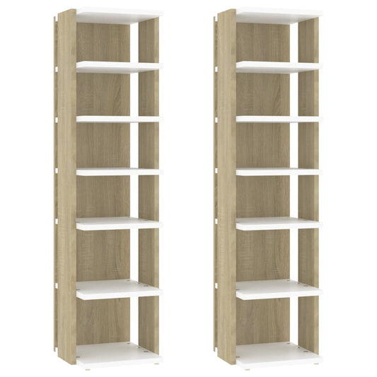 Berkfield Shoe Cabinets 2 pcs White&Sonoma Oak 27.5x27x102 cm