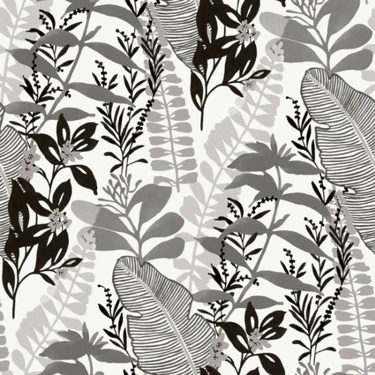 Noordwand Good Vibes Wallpaper Big Leaves Black and White