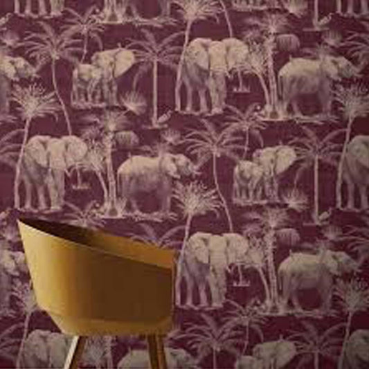 DUTCH WALLCOVERINGS Wallpaper Elephant Grove Aubergine