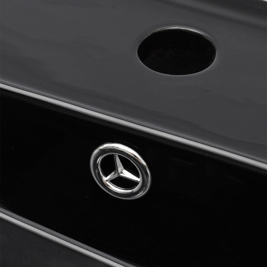 Ceramic Bathroom Sink Basin Faucet/Overflow Hole Black Rectangular