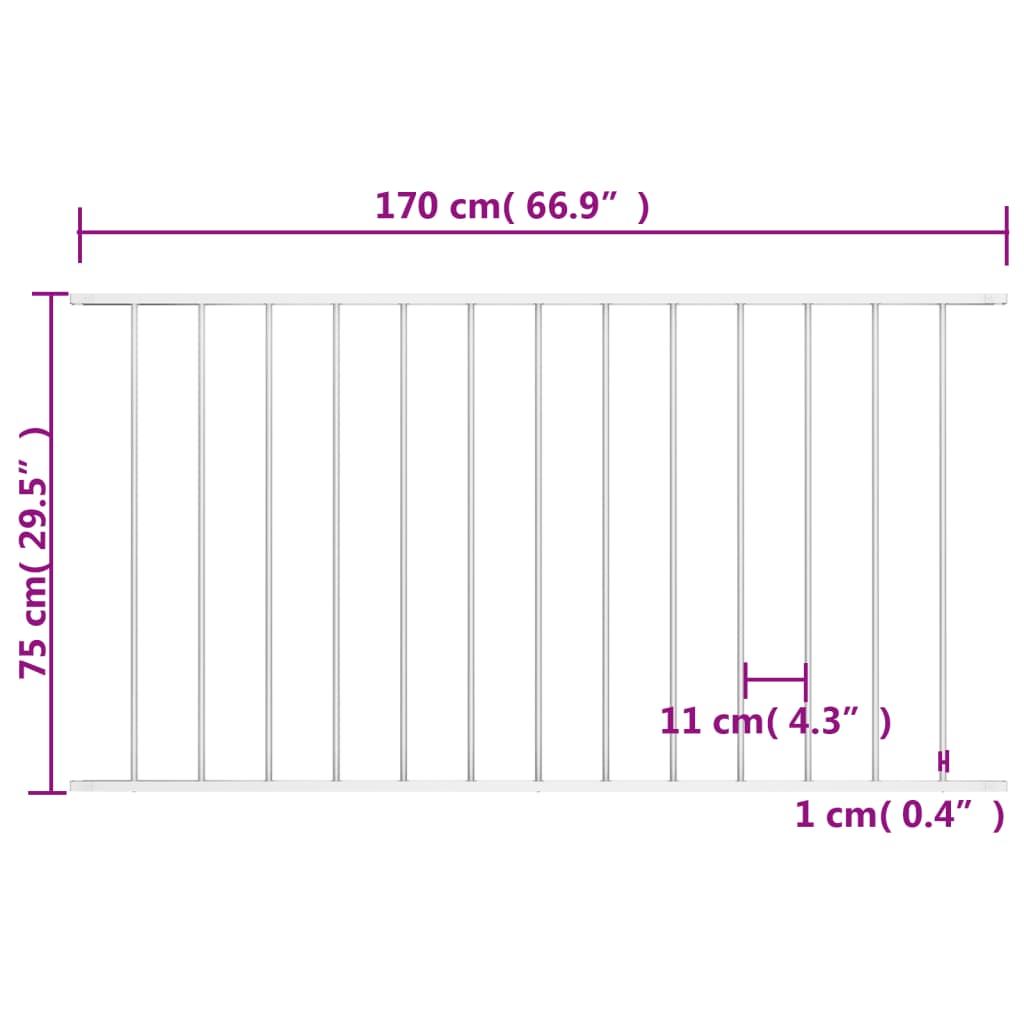 This garden fence has a basic yet practical design, and suits any garden. Made of strong powder-coated steel, this fence panel, combined with fence posts (not included), will make a sturdy and durable partition for your garden. Our fence panel, featuring weather- and corrosion-resistance, is ideal to keep unwanted guests away from your property. With mounting materials included, the garden fence can be easily mounted in the ground. Delivery includes 1 fence panel and mounting materials.