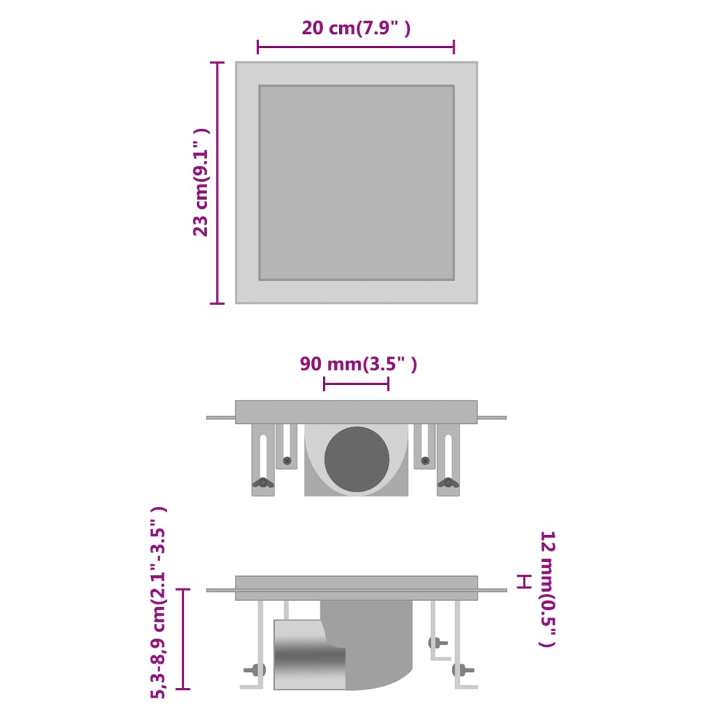 Berkfield Shower Drain With 2-in-1 Flat and Tile Insert Cover 23x23 cm Stainless Steel