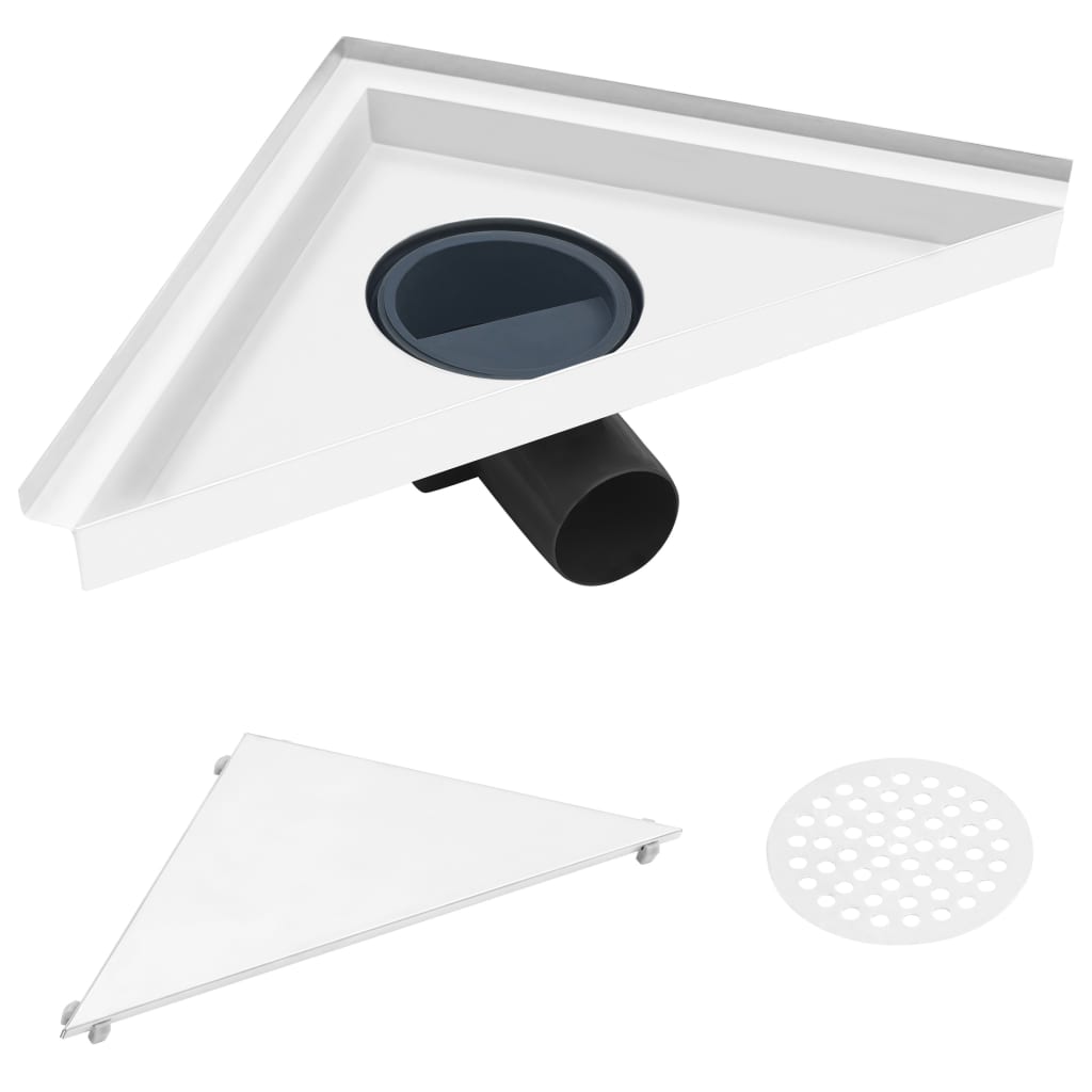 Are you looking for an accessory combining style and practicality to upgrade your shower to the next level? Our shower drain, specially designed with 2-in-1 reversible cover, will be your preferred choice! This multipurpose cover has one tile insert side and one flat side. This allows you to place matching tile or just use as normal flat grate. Both offers a seamless look to your shower. Equipped with a strainer, the bathroom drain effectively prevents hair from into cess-pipe and blocking the cess-pipe. This strainer is also removable for easy cleaning. Thanks to the triangle shape, the drain is also suitable to be installed in the corner of the shower. Stainless steel material contributes to the corner shower drainer's sturdy, corrosion resistant construction and also give it a modern, elegant look to fit any interior decor.