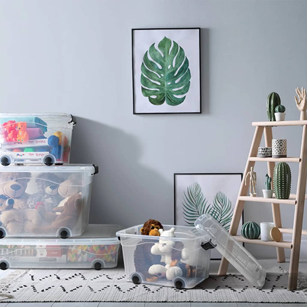 These storage boxes are brilliant for storing all life's little items. They are perfect for organising, tidying and sorting. These storage bins are made of 100% PP (Polypropylene), making them sturdy, durable and easy to clean. The transparent bases allow you to see the contents of the box at a glance. Thanks to the stackable design, the storage containers are nestable when not in use to save storage spaces. The firm latches on both sides can be tightly attached to the groove on the lid, protecting the contents of the box from getting dirty or wet. The four wheels on the bottom make it easy to move the container, even when stacked, on surfaces. Additionally, the boxes are food safe, so they are also suitable to store condiments, spices, snacks, drinks, and other food.
