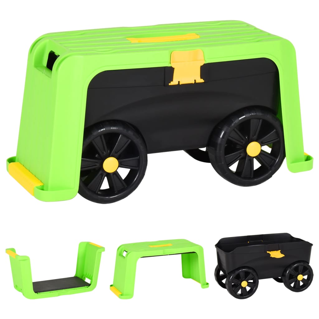 This 4-in-1 garden stool is ideal for planting, weeding or painting fence. So, you don‰۪t have to suffer pain on your back or joints anymore. Durable material: The garden roller is made of PP. Polypropylene (PP) is a popular plastic that is lightweight, tough, and resistant to impact.Multifunctional stool: This roller stool offers a convenient seat on 1 side, and flips over to reveal a soft, padded foam kneeling pad to protect knees and joints! Also, the tool legs serve as support handles for additional stability as you stand up.Practical storage bin: This garden cart has a spacious storage bin, providing plenty of storage space for your garden tools. So you always have all the garden tools at hand.Easy transportation: Thanks to the handle on the top and lightweight design, you can easily carry this garden kneeler seat. Good to know:To make assembly as easy as possible, each product is delivered with a manual.
