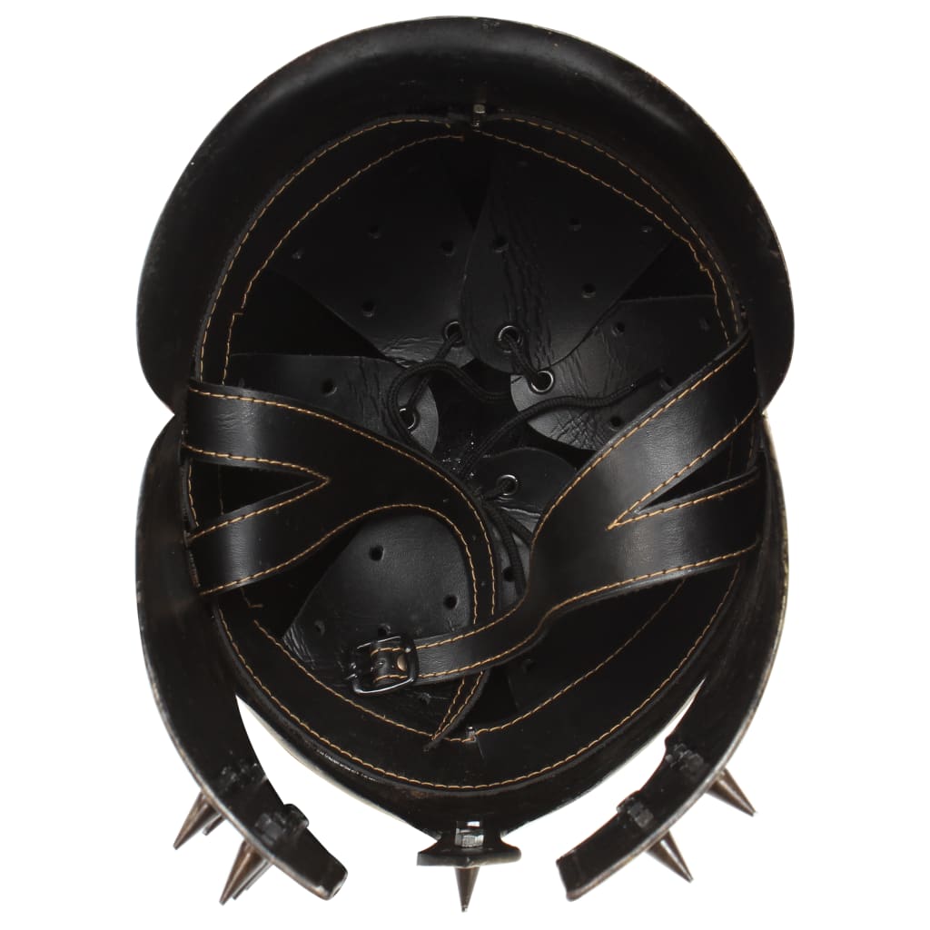 This antique looking armour helmet, also called Leonidas helmet, is great for LARP (live action role play), cosplay, parties with a historical theme, Halloween party, theatrical props and historical reenactments. The armour helmet is an exact replica of an original Greek warrior helmet. Made of 18-gauge steel, this helmet combines antique style and sturdy material into an eye-catching helmet, which perfectly matches with your warrior outfit. Additionally, it is also an attractive display piece.