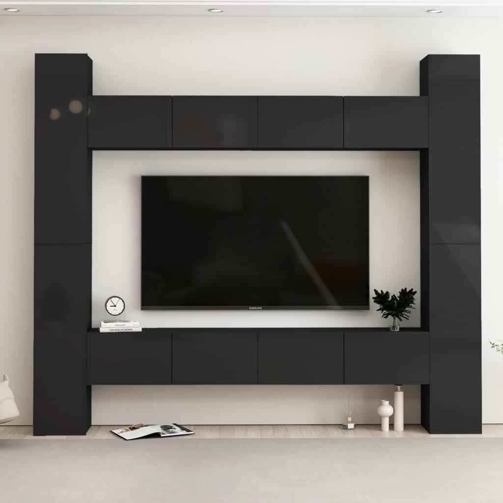 Berkfield 8 Piece TV Cabinet Set High Gloss Black Engineered Wood
