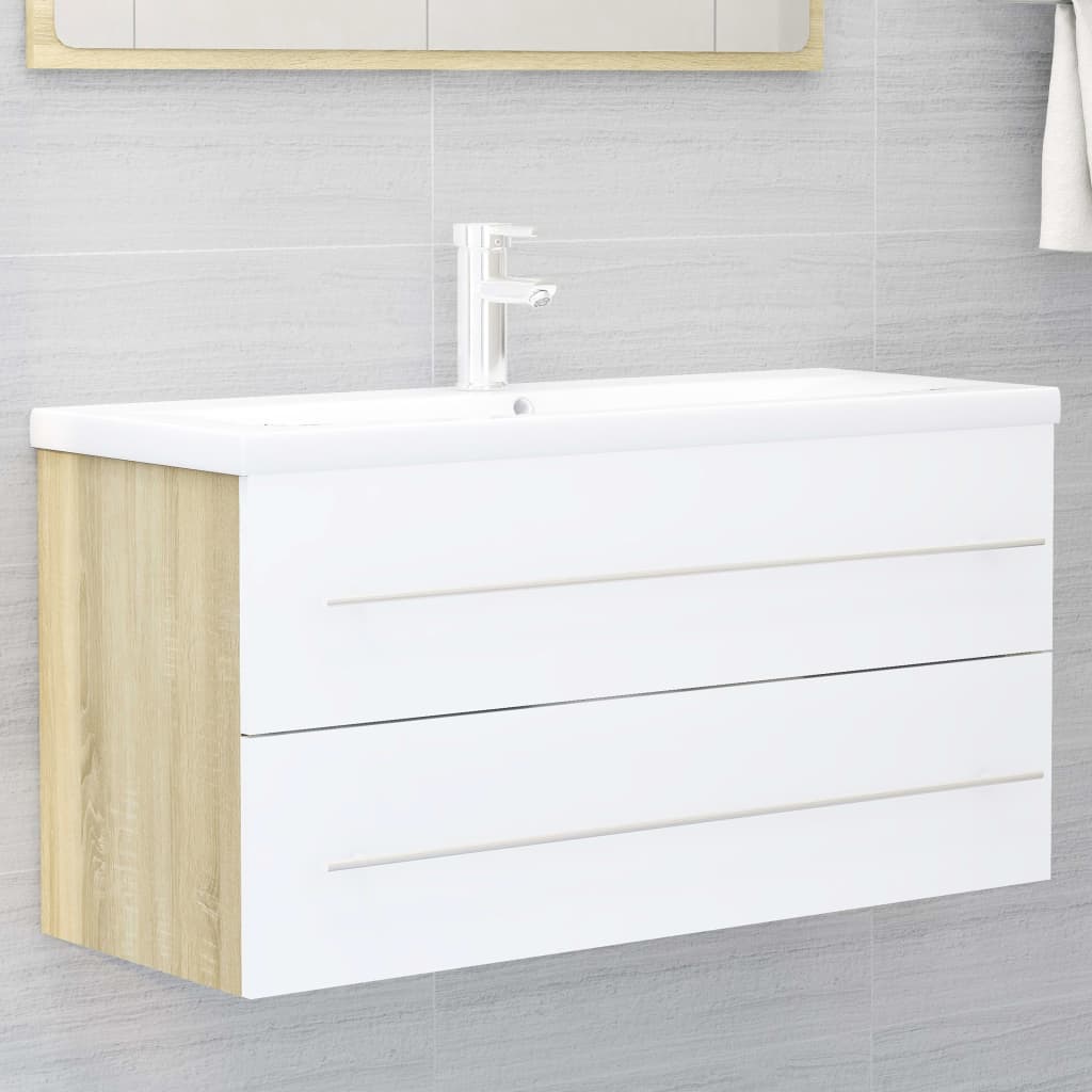 Berkfield Sink Cabinet with Built-in Basin White and Sonoma Oak Engineered Wood