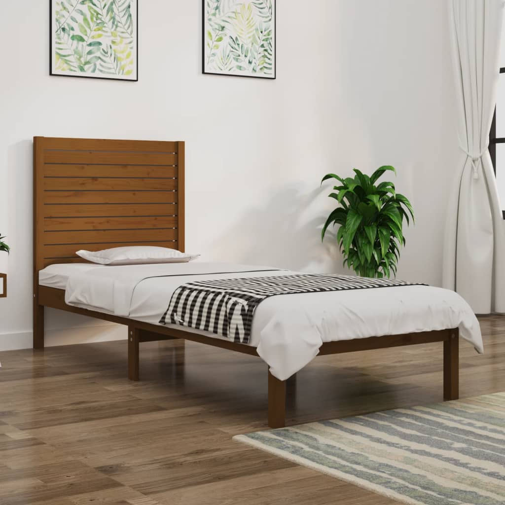 Berkfield Bed Frame Honey Brown Solid Wood 75x190 cm Small Single