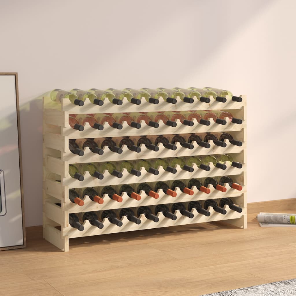 Store, and display your wine in style with this wooden wine rack! Solid pine wood: Solid pine wood is a beautiful natural material. Pine wood has a straight grain, and the knots give the material its signature, rustic look.Ample storage space: The wine holder provides ample storage space to store your wine. It is ideal for holding up to 60 bottles of wine.Sturdy frame: The wooden frame ensures sturdiness and stability. Warning:In order to prevent overturning, this product must be used with the wall attachment device provided.Note:Each product comes with an assembly manual in the box for easy assembly.