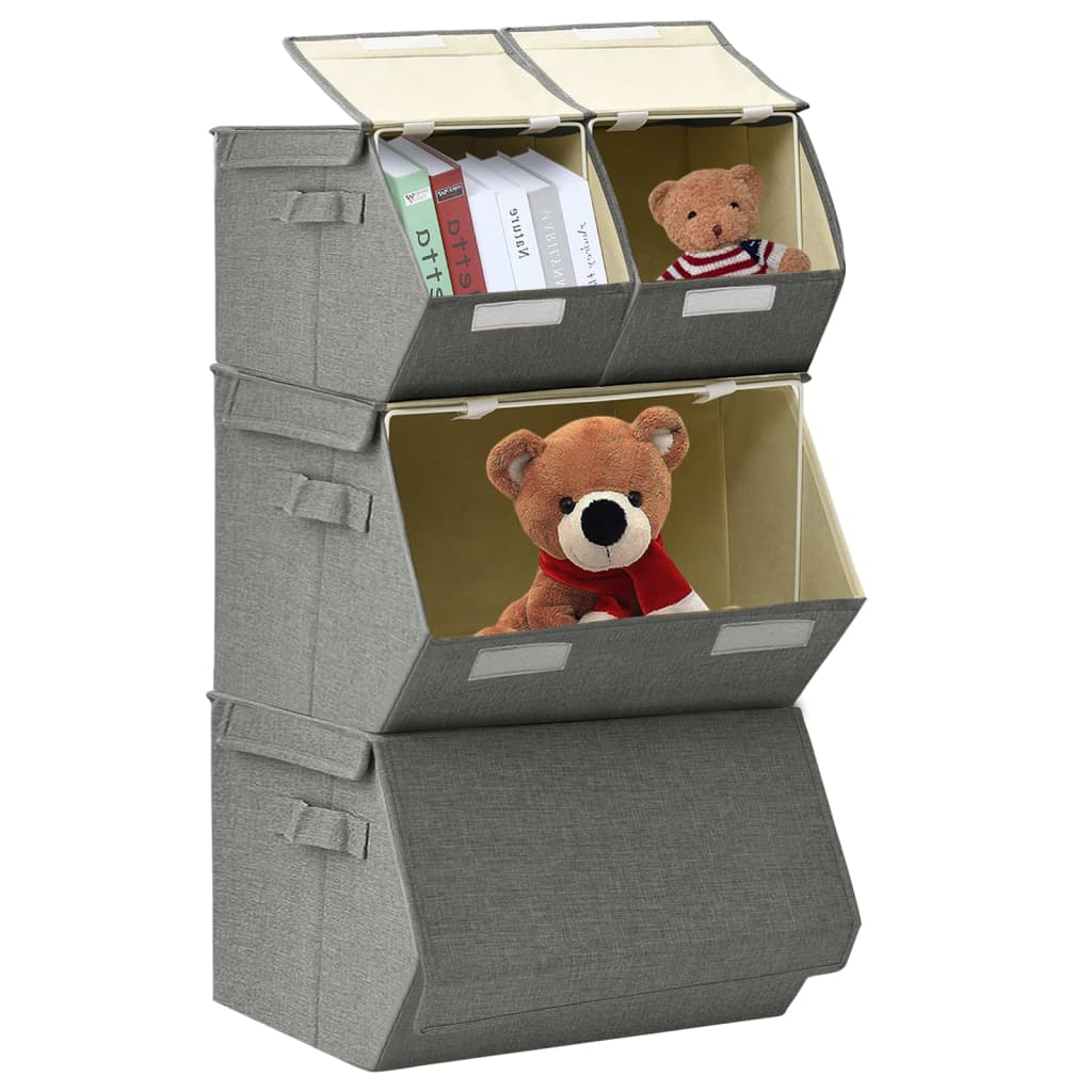 Berkfield Stackable Storage Box Set of 4 Pieces Fabric Anthracite