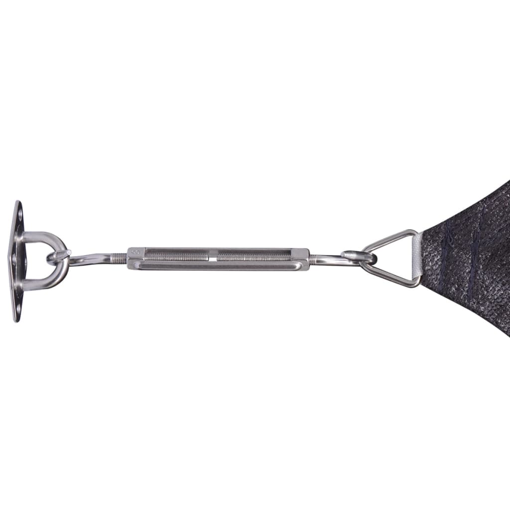 With our sunshade sail mounting kit, consisting of 2 carabiner hooks, 2 wall mounts and 2 adjustable turnbuckles, you can easily fix your square sunshade sail to any structure, tree or post. Made of high-quality stainless steel (316), this durable hardware kit will keep your sunshade sail securely in place all summer long, whatever the weather conditions are.