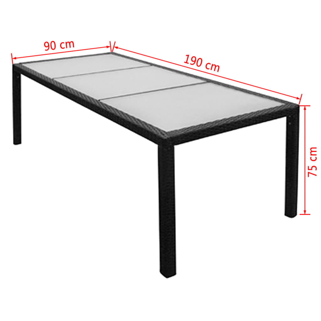- Table size: 190 x 90 x 75 cm (L x W x H)