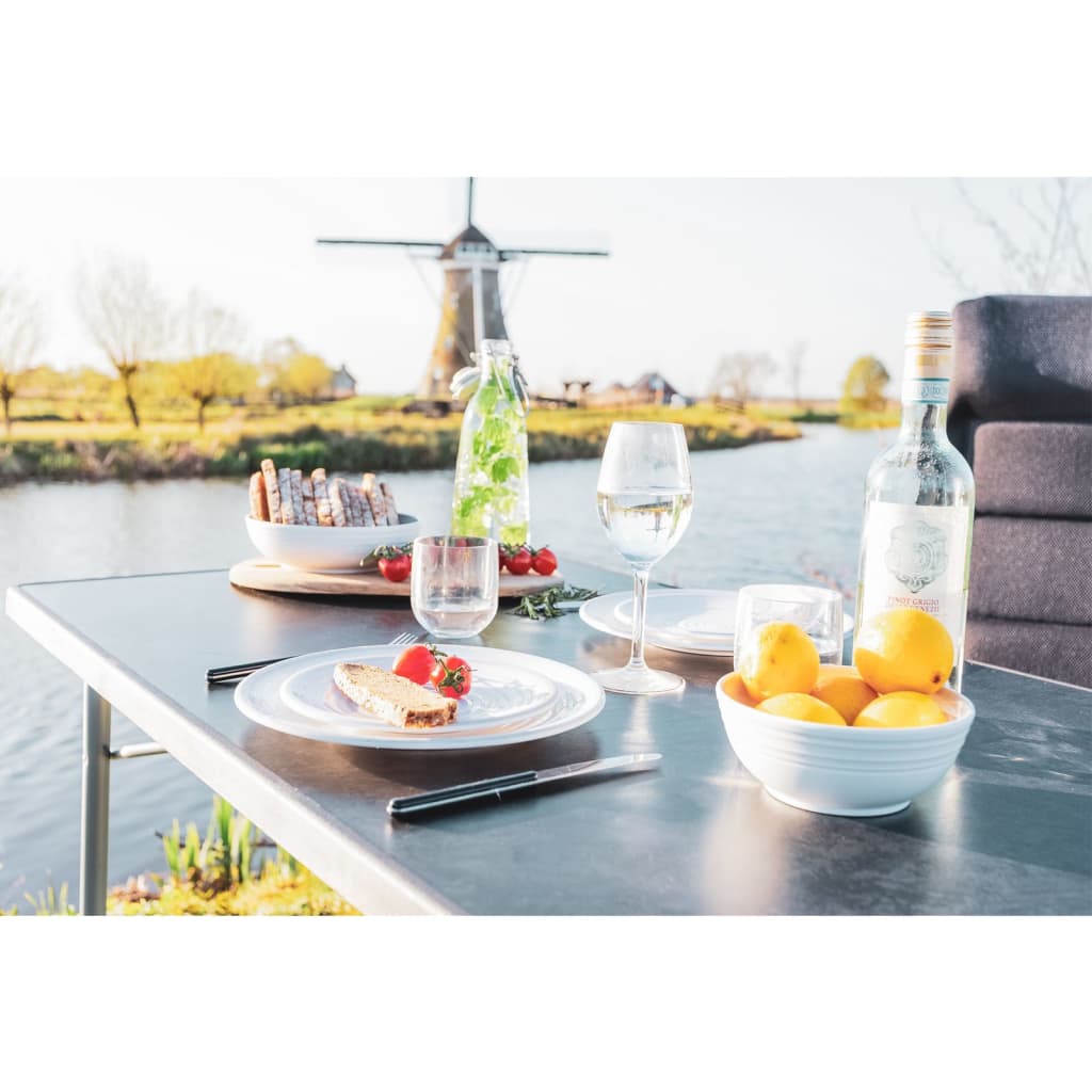 Camping stands for enjoying the outdoors! With a good camping table like the 80x60x85 cm Travellife Barletta Comfort 80 folding camping table you can enjoy a lovely meal outside, play a game or enjoy a drink in the evening. It is really lightweight and you can easily take it with you on a trip. The featured smart-lock system ensures that the table's legs are fully adjustable in height between 63 and 85 cm. This way you can make sure the table is levelled on an unstable surface. The wide feet and the sturdy steel frame provide even more stability. The table top is made of Sevelit: a weather and heat resistant material. You can place a hot pan (up to 180 degrees) on this camping table, and it can also be left outside in bad weather. The Barletta picnic table is not only easy to transport, it also requires hardly any maintenance. The Sevelit table top is very easy to clean. Besides, the table can carry up to 50 kg in weight. This camping table will enable you to enjoy the outdoors wherever and whenever you want!