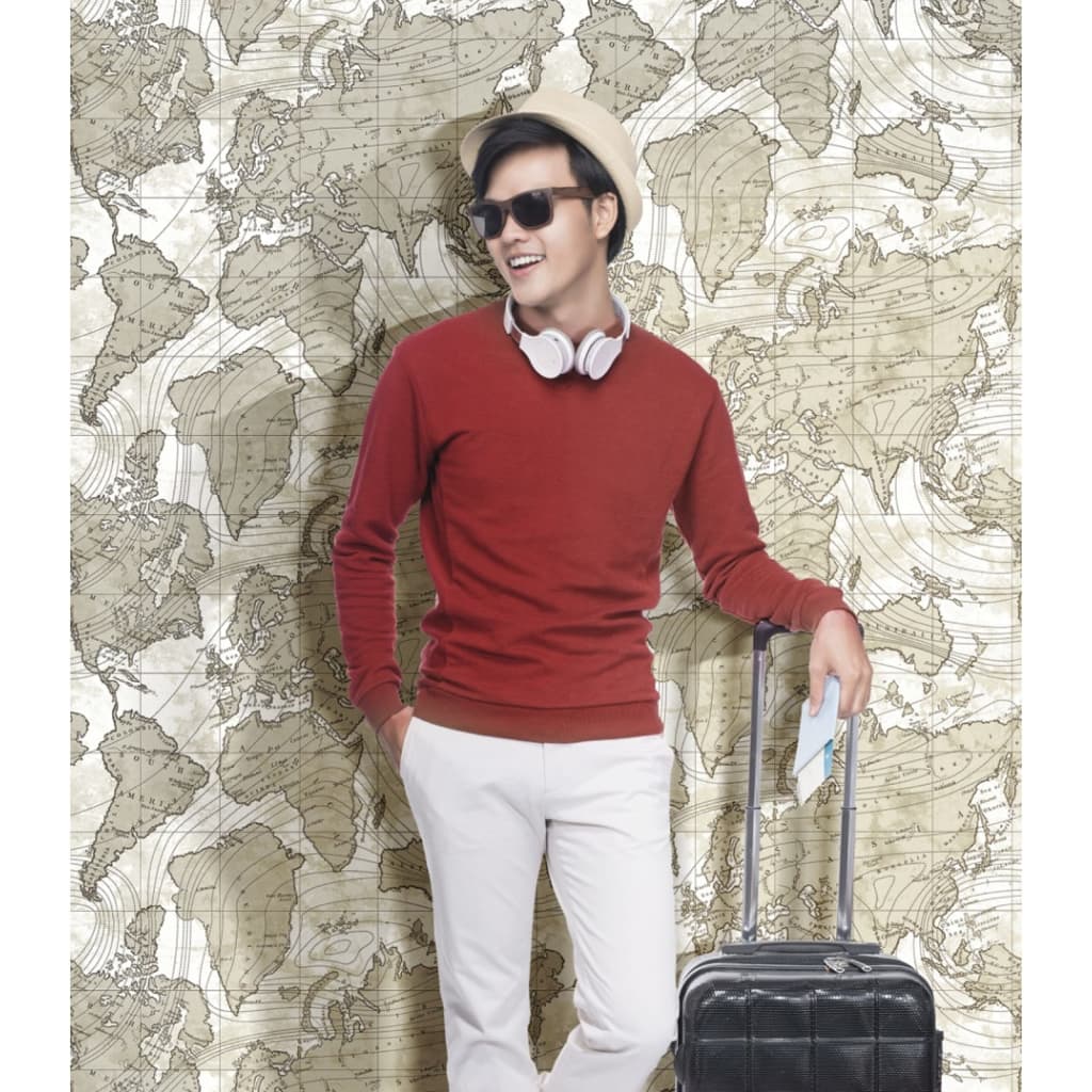 This metallic and beige wallpaper is part of the Noordwand Friends and Coffee The World Map collection, featuring of a wide variety of wallpapers with graphic prints from industrial till modern styles, and in different colours. Easy to apply: Nonwoven wallpaper has a paper top layer with a nonwoven back, making it possible to apply the glue directly on the wall instead of the wallpaper sheet. This makes the application much easier! Strong nonwoven material: The material is strong, easy to apply and can be used perfectly on rough walls or newly constructed walls, and if needed, it is fast and easily removable.Modern style: With the world map print, this room looks more modern and interesting.Washable wallpaper: Light dirt is removable with a slightly damp cloth or soft sponge.
