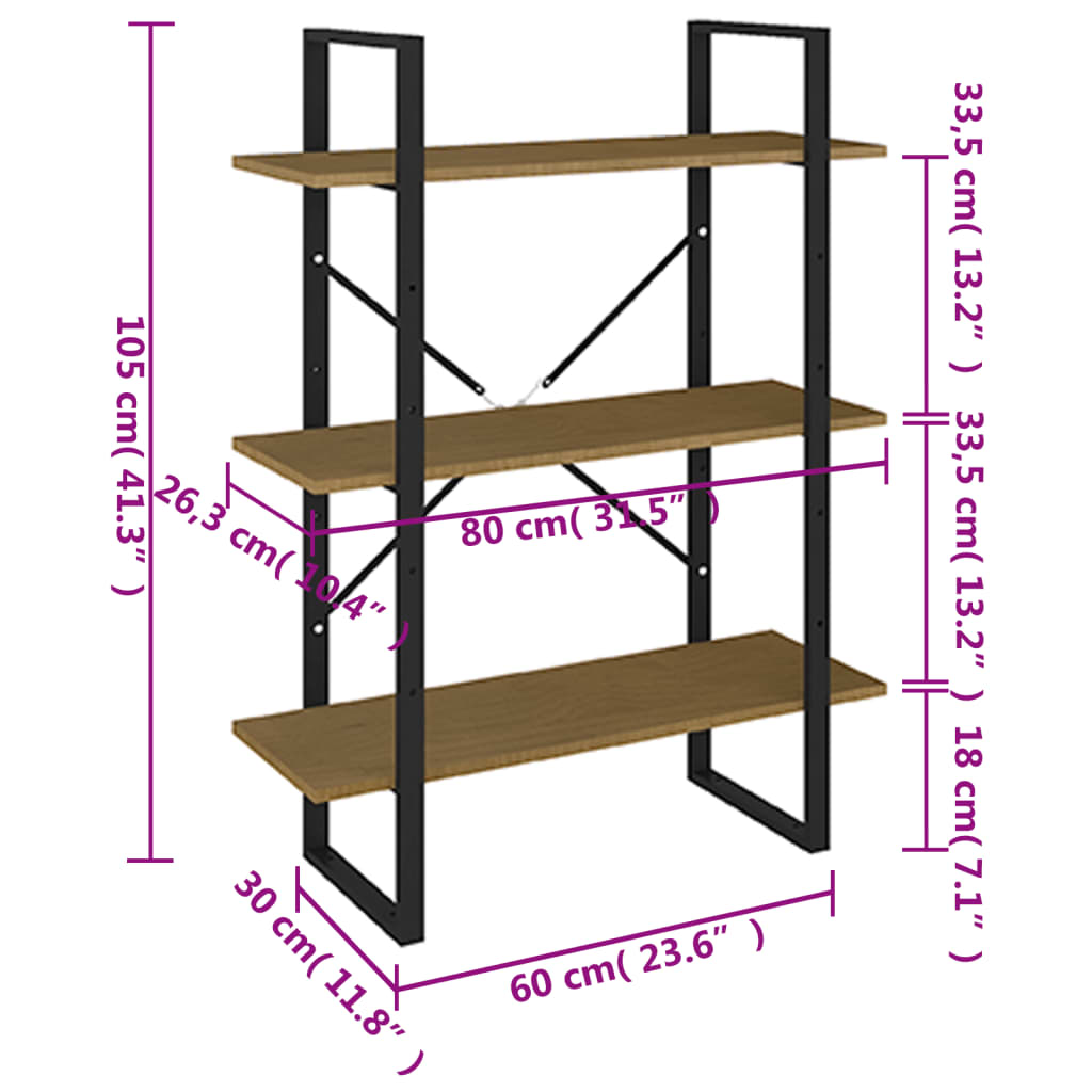 Berkfield 3-Tier Book Cabinet Brown 80x30x105 cm Solid Pine Wood